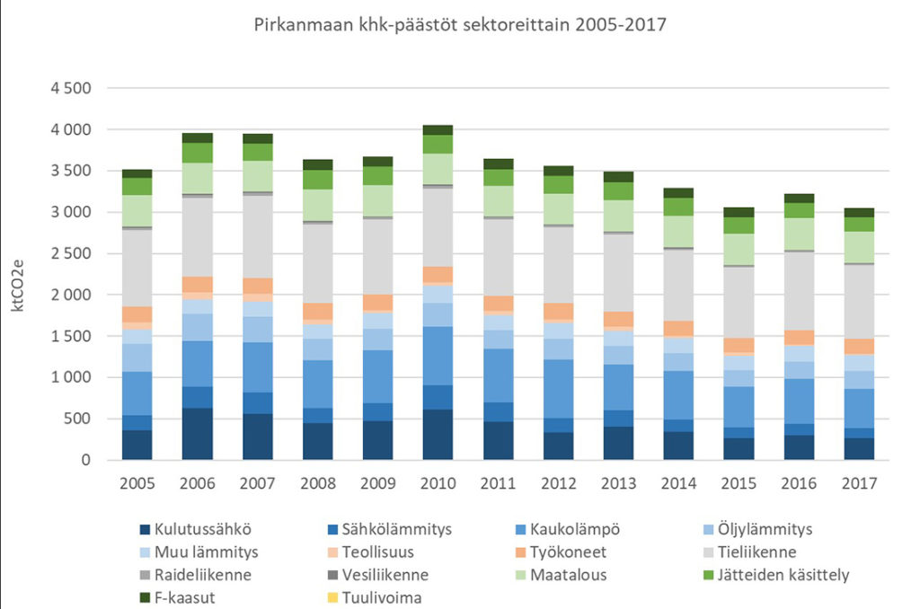 Pirkanmaalla päästöt ovat laskeneet kymmenessä vuodessa 2007–2017 noin 22 prosenttia. Maakunnan kehitys noudattaa kansallista kehitystä: energiatehokkuuden paraneminen, sähkön- ja lämmöntuotannon siirtymä vähäpäästöisempiin lähteisiin sekä liikenteen polttoaineiden biokomponentin sekoitusvelvoite muodostavat merkittävän osan päästövähenemästä. Väkiluvun kasvu Pirkanmaalla tuo oman haasteensa päästövähennystavoitteiden saavuttamiseen. Maakunnassa on viime vuosina tapahtunut merkittävää aktivoitumista kuntien sekä Tampereen kaupunkiseudun hiilineutraalisuustyössä, ja tämän työn vaikuttavuutta päästään arvioimaan, kun Suomen ympäristökeskus jatkossa päivittää laskelman vuosittain.